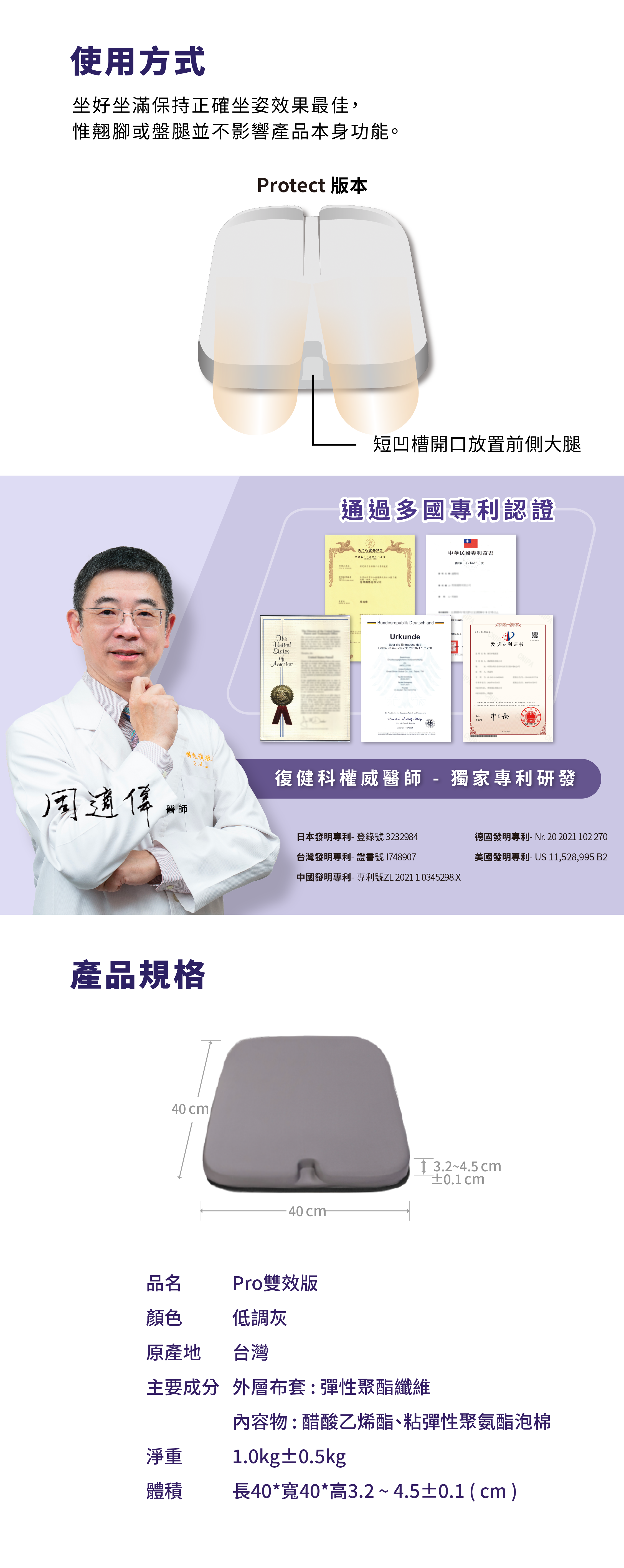 ✔ 薦尾椎靜置時的保護空間